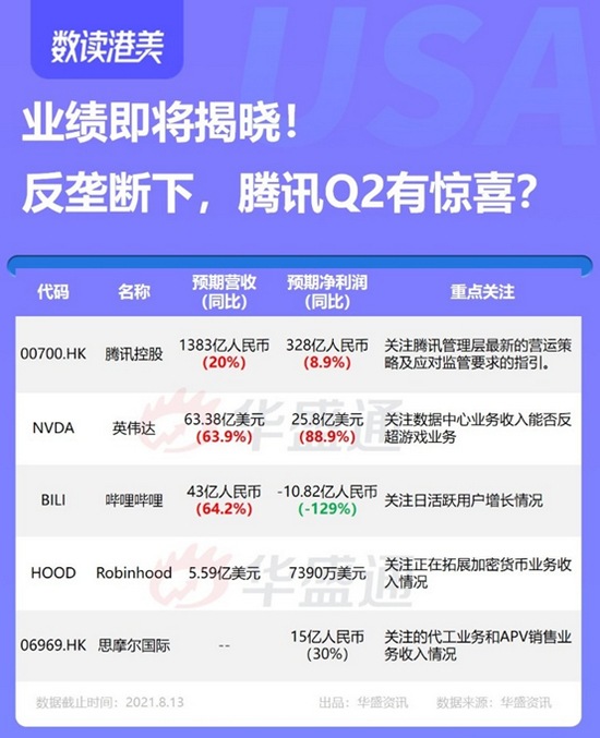 时间来到8月份第三周,港美股市场将继续迎来多份重磅财报,下周市场焦点主要是互联网龙头腾讯控股、芯片龙头英伟达、二次元的哔哩哔哩、美国散户集中营Robinhood以及电子烟龙头思摩尔国际等明星个股。