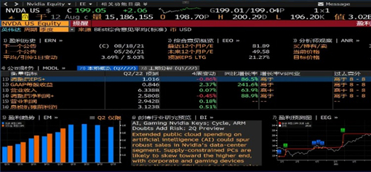 英伟达预计将于8月18日美股盘后公布2021年Q2财务报表。根据彭博预期,预计英伟达2021年Q2将实现营收63.38亿元美元,同比增长63.9%;实现经调整净利润为25.8亿美元,同比增长88.9%;调整后每股收益为1.016美元。