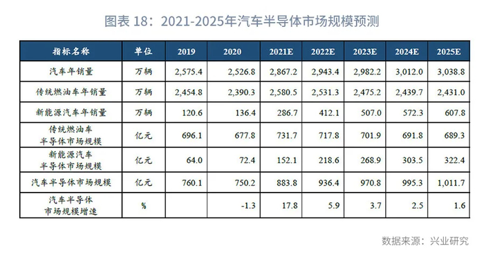 根据我们前文测算得未来汽车产业的消费需求,到2025年,汽车半导体市场规模有望达到1011亿元,具体测算结果如下。