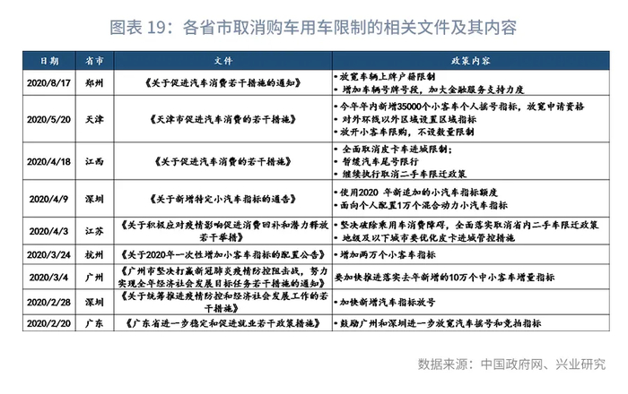 放松购车限制的消费刺激政策则与我国的国情有关。前文也谈到,我国当前大中城市的路网汽车容纳量相对较高,交通压力相对较大。过往热点城市出台了限牌限号限行等限制措施来避免城市汽车保有量的过快扩张,但是也一定程度上限制了汽车消费。当前,我国许多城市已出台政策,放松或取消相应的限制来鼓励汽车消费。