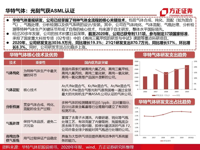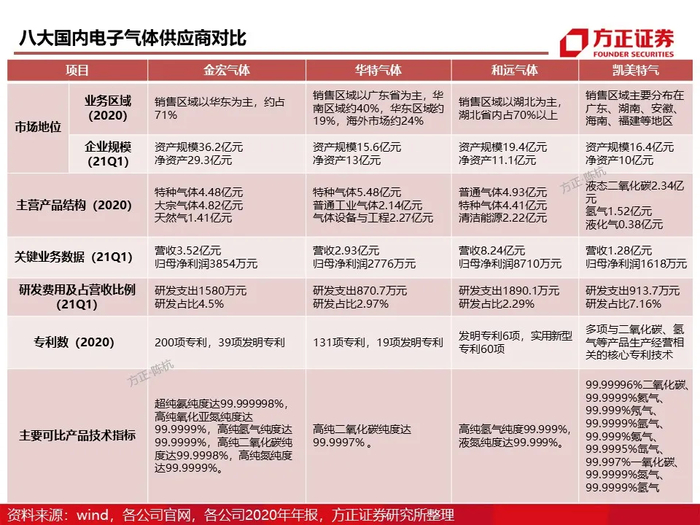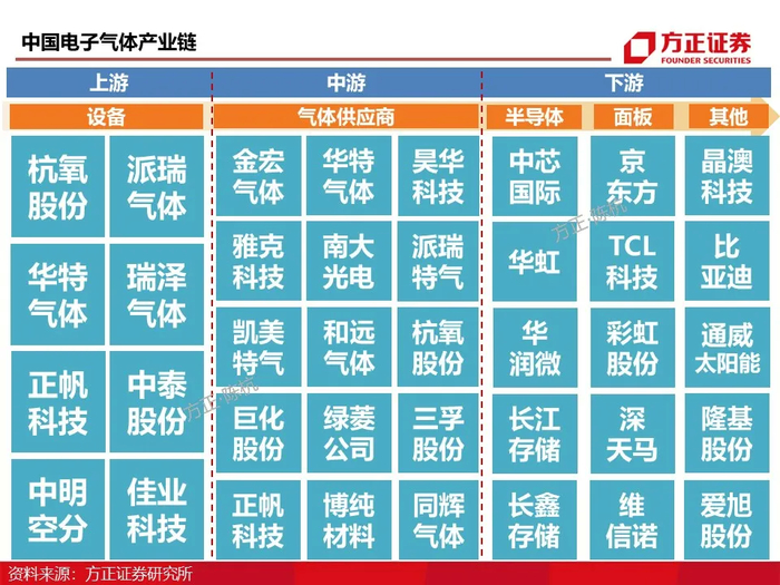 电子气体设备供应商标的:华特气体、杭氧股份、中船重工718所、正帆科技等
