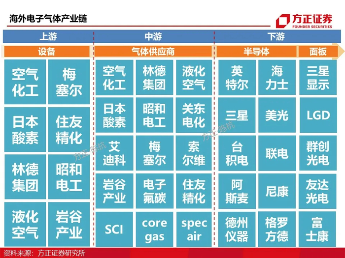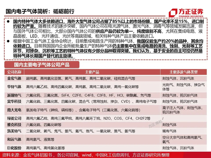 电子特气投资机会来自电子气体产业链的国产替代,建议关注相关产业链标的: