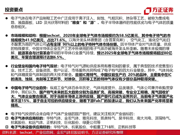 2025年电子气体市场规模或将超80亿美元,产业链国产替代有哪些机会?