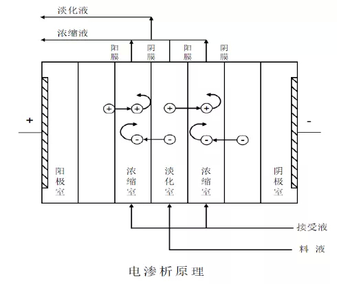 ► 电渗析膜法(Electrodialysis,ED):通过电场力的作用使卤水中的阳离子迁移,其中锂等一价阳离子透过选择性离子交换膜迁移到浓缩室,而镁、钙等二价阳离子被膜阻隔,留在脱盐室。