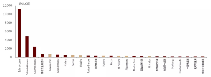 图表11:盐湖资源项目的单体资源规模一般大于硬岩锂矿