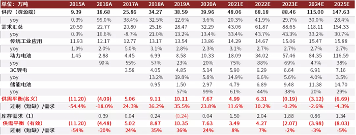 图表5:2021-2025年锂行业供需逐步走向紧张