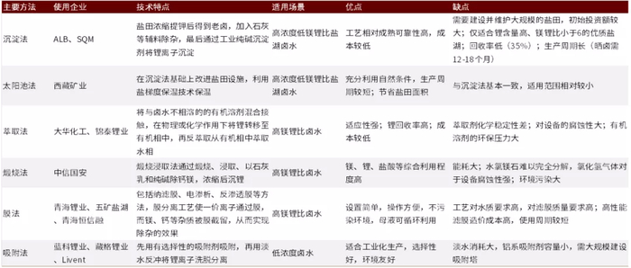 资料来源:殷陶刚《吸附剂提锂技术研究进展》(2010年)、中金公司研究部