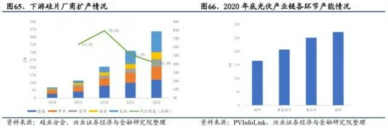 产业链中间环节300GW以上的预期产能加剧了硅料环节的供需错配。相对于全球的装机需求量,光伏产业链中下游产能的大幅扩张更是直接导致了上游多晶硅料的供给不足。根据硅业分会的统计,硅料下游的单晶硅片产能正在高速扩张,预计2021年底将达到310GW、2022年底达437GW,分别同比增长51%、41%。电池片环节及组件环节的产能同样大幅高于多晶硅。多晶硅生产环节属于高投入、高技术、高载能行业,但又长期处于盈亏线甚至亏损边缘,因此在产企业扩产资本有限,同时外界资本也少有涉入。而中间硅片、电池片环节由于连续多年维持相对较的高盈利水平,企业自身扩产能力充足,同时吸引了大量外界资本进入,导致中间环节扩产规模和速度远超预期。从中短期来看,多晶硅将一直成为全产业链中的产能瓶颈。