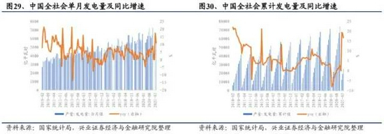 国内电力消费复苏,同比增速大幅提升。2021年1-4月,疫情影响基本消退,电力消费情况同比2020年大幅提升,全社会用电量累计25581亿千瓦时,同比增长19.1%,比2019年同期增长20.3%。分产业看,第一产业用电量283亿千瓦时,同比增长23.8%,比2019年同期增长24.1%;第二产业用电量17074亿千瓦时,同比增长20.7%,比2019年同期增长23.0%;第三产业用电量4379亿千瓦时,同比增长29.0%,比2019年同期增长27.9%;城乡居民生活用电量3845亿千瓦时,同比增长3.8%,比2019年同期增长27.9%。2021年,我国经济持续复苏,电力消费同比增速从疫情的低点中大幅提升。
