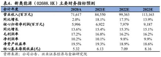 我们的观点:公司作为民营城市燃气龙头企业,销气量增长复苏趋势明确,售气价差维持平稳,泛能业务和增值业务对收入和毛利贡献的确定性和成长性较强。我们预测公司2021、2022和2023年的营收分别为845.50、993.63和1131.63亿元,净利润分别为69.22、79.79和91.87亿元。EPS分别为6.13、7.09和8.16元,给予公司目标价132.03港元,对应2021年18倍PE,维持“买入”评级。