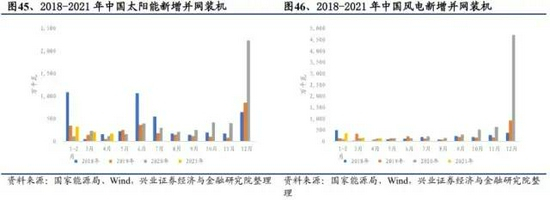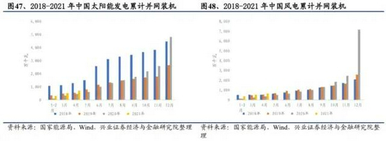 2021年以来,新能源装机量受到政策有力支撑,国内新能源装机量同比大幅增长。2021年是“十四五”开局之年,也是风电、光伏发电平价上网的第一年。在碳中和愿景下,新能源装机量有巨大的增长空间。2021年5月20日,国家能源局文件已经为2021年风电+光伏设定了保障性规模90GW,给2021年我国新能源新增装机提供了最低装机预期。1-4月,国内风电和太阳能新增装机量分别为6.60GW和7.08GW,去年同期该数据分别为3.55和4.56GW,同比分别增长85.9%和55.3%,剔除低基数效应对比2019年同期值5.50GW和5.50GW,该数据也同比增长了20.0%和28.7%。在碳中和背景下,预计2021年我国风电、光伏装机量有望继续高速增长。