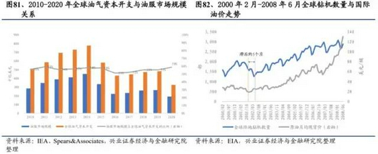 从原油价格到油服公司业绩的传导路径清晰:原油价格变化——油气公司的业务收入变化——油气公司资本开支变化——勘探与开发项目的增减——油服公司的业绩变化。石油公司的资本性支出与油服行业的市场规模息息相关,2010-2020年,全球油服市场规模占全球油气资本开支的比例基本稳定在55-60%的水平。