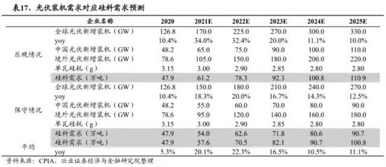 2021全年硅料或将处于紧平衡状态。根据CPIA,2021年全球光伏装机乐观状态下达170GW,对应硅料需求约61万吨(假设单瓦平均硅耗为3g/W,容配比为1.2),悲观状态下为150GW,对应硅料需求54万吨,全年硅料供应处于紧平衡或供小于求的状态。2022年随着大量新产能的投入,供不应求的状态有望缓解。