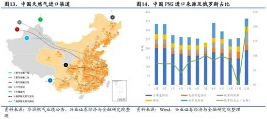 2020年7月,中俄东线天然气管道工程南段(河北永清-上海)正式开工,2020年12月3日,中俄东线天然气管道中段(吉林长岭-河北永清)投产通气。中俄东线天然气管道全线建成投产通气后,每年可向东北、环渤海、长三角地区稳定供应清洁优质的天然气资源380亿立方米,在增强我国天然气资源保障能力的同时,进一步完善了我国东部地区的天然气管网布局,与东北管网系统、陕京系统、西气东输系统互联互通,共同组成纵贯南北、横跨东西、连接海外的天然气管网格局,对于保障我国能源安全意义重大。2020年12月-2021年3月,我国从俄罗斯进口的管道气已从之前每月平均22万吨提高到72万吨、45万吨、70万吨和63万吨。