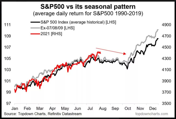 历史统计也预示着风险,9月是美股一年中表现最弱的月份。自1945年以来,标普500指数9月份的平均跌幅为0.56%。需要注意的是,指数主跌段往往出现在下半月,因此指数压力并未消失。