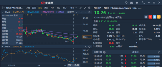 另外,NRX Pharmaceuticals $NRXP 的股价表现也同样亮眼,其于10月12日周二收涨61.06%,当周录得47.63%的涨幅。