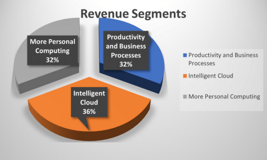 如上图所示,微软的收入是均匀分布在这三个领域的,这说明微软的收入来源相当多元化。