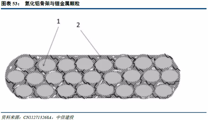 专利CN112713268A将氮化铝粉和金属锂粉复合,搭配磷酸铁锂正极(如果是三元正极,甚至高镍三元正极的话相信能量密度会更高)在2C倍率下进行循环充放测试。多个实施例的容量在600次循环以后才衰减至85%(但是衰减到85%后再经过不足100次循环就会短路)。相比之下未复合的对比例在不到200次循环时已经短路。
