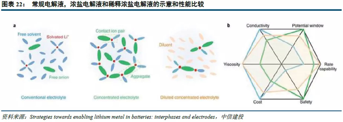 另外,也有相当部分研究把视线投向高浓度锂盐系统,以提升安全性并拓宽电化学窗口。当然,高浓度锂盐也要付出成本为首的一些代价。