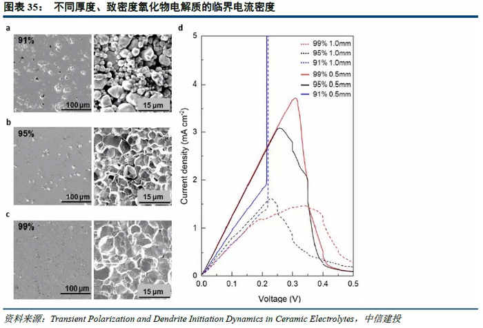 控制固体电解质的厚度(相对较薄)、致密程度(较致密),对提升产生锂枝晶的临界电流密度有正面作用。