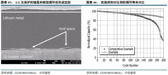 类似地,专利CN106716690B论述,金属锂表面沉积氮化锂-LiBON薄膜后,性能得到提升;专利CN109565039A论述,金属锂表面沉积氟化锂后,性能得到提升。可见,LG的锂金属电池(搭配电解液),其关注重点在于表面改性以提升电池负极的稳定性。这也确实是锂金属电池实用化的重要难点之一。