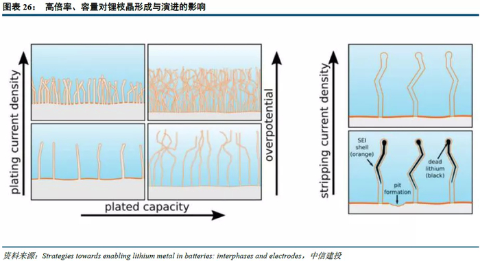 低倍率充放条件下,锂枝晶形成与演进的动力学驱动力不强。但消费者对电池倍率性能有偏好(以整车为例,对应动力性和快充能力等)。在高倍率条件下,电池单体的寿命保持较高水平的难度也大幅增加。