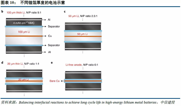 接下来是成本问题。金属锂箔并不廉价,即使N/P=1,仍然相当于多使用约1倍的锂;更低含量的锂箔需要蒸镀等工艺。这还没有考虑溶剂体系、锂盐、安全生产等方面的投入。