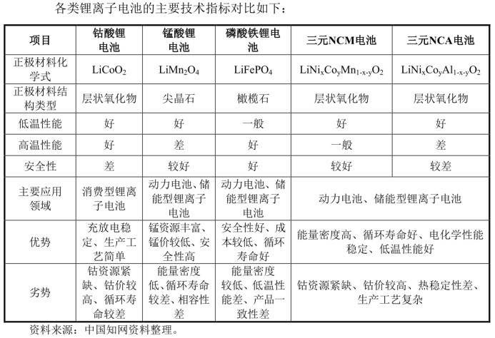 按材料类型划分,锂离子电池可分为锰酸锂(LMO)、磷酸铁锂(LFP)、钴酸锂(LCO)和三元材料等技术路线。而由于三元锂离子电池具备高能量密度、长续航、长寿命、可低放电等优势,目前已成为动力电池技术发展的主流路线之一。