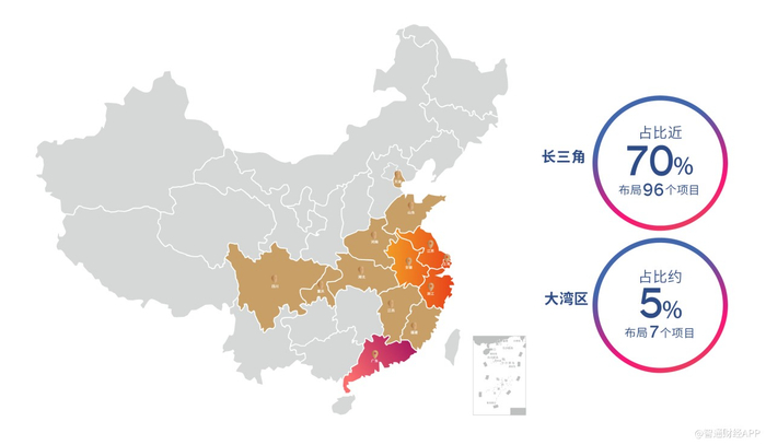 回顾2021年,该公司在长三角地区已布局96个项目,占比总项目近70%,其中南京、上海、杭州、宁波的项目数分别达到7个、12个、12个及14个。大湾区主要包括广东、中国香港及中国澳门,目前已布局7个项目,今年11月,该公司珠海高新宝龙广场正式开业,引入超200家品牌,其中区域首进品牌超过30%,首日客流量即突破23万。此外,该公司积极外拓项目,截止12月共外拓34个项目。