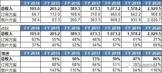 Shopify 有两大块收入分类:Subscription Solutions(订阅方案)和 Merchant Solutions(商家方案)。