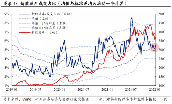 换手率:新能源车换手率当前已接近于均值-1.5倍标准差的经验下限阈值。