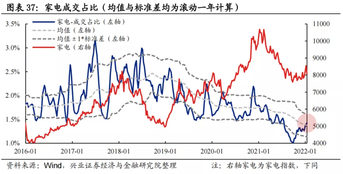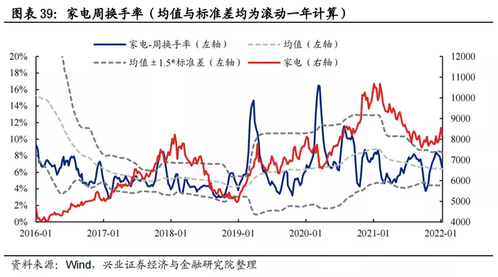 换手率:家电换手率近期有所回落,当前处于均值附近水平。