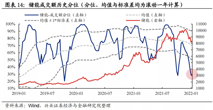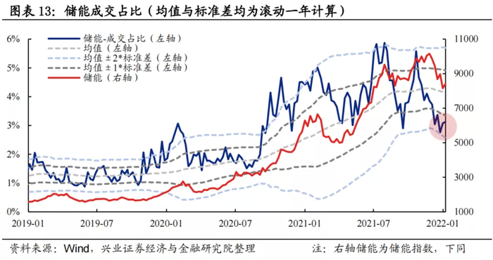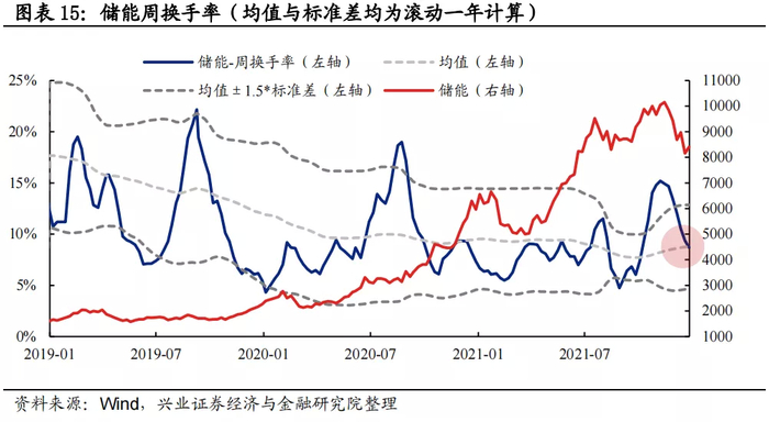 换手率:储能换手率自11月以来大幅回落,当前处于均值水平。