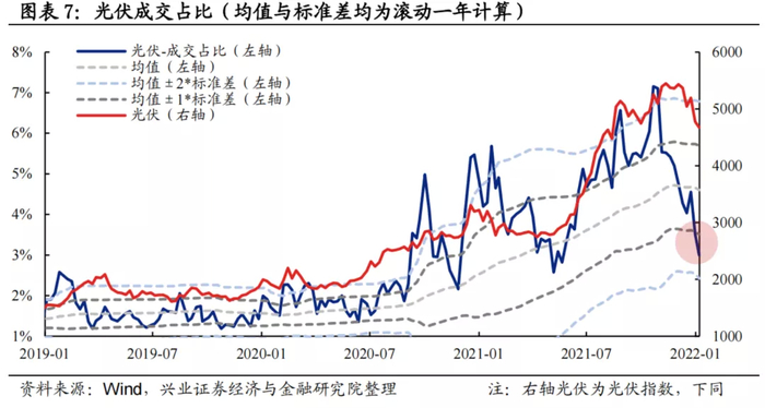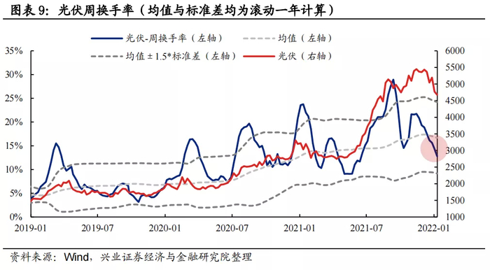 换手率:光伏换手率当前已低于均值,处于经验下限阈值下方。