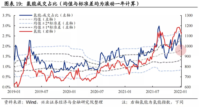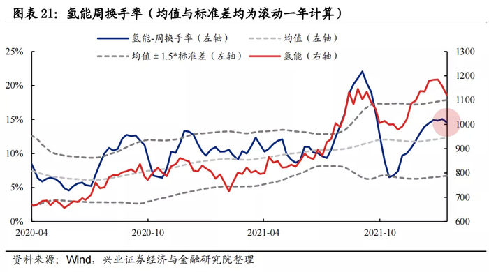 换手率:氢能换手率位于均值上方,但当前已开始回落。