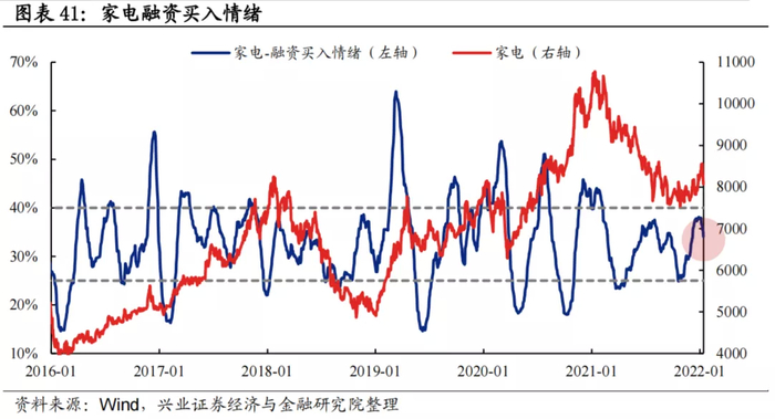 融资买入情绪:家电板块融资买入情绪波动区间基本为25%至40%,当前为34.08%,处于中等偏高水平。