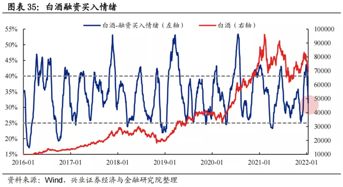 融资买入情绪:白酒板块融资买入情绪波动区间基本为25%至40%,当前为31.4%,交易拥挤度已有所缓解。