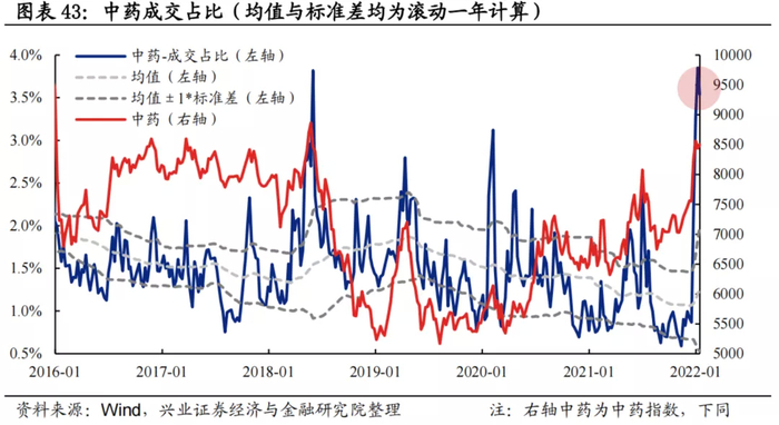 换手率:中药换手率已处于均值+1.5倍标准差经验上限阈值上方。
