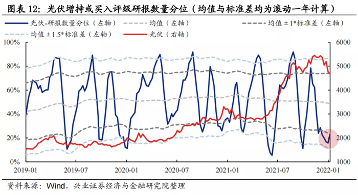 研报数量:分析师新发布的增持或买入评级的光伏公司研报数量分位当前为22.9%,较此前已开始有所回升。