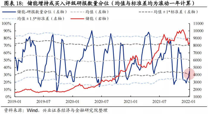 研报数量:分析师新发布的增持或买入评级的储能公司研报数量分位当前为35.1%,较此前已开始有所回升。