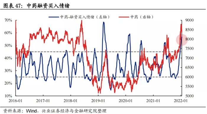 融资买入情绪:中药板块融资买入情绪波动区间基本为25%至45%,当前为55.95%,处于中等水平。
