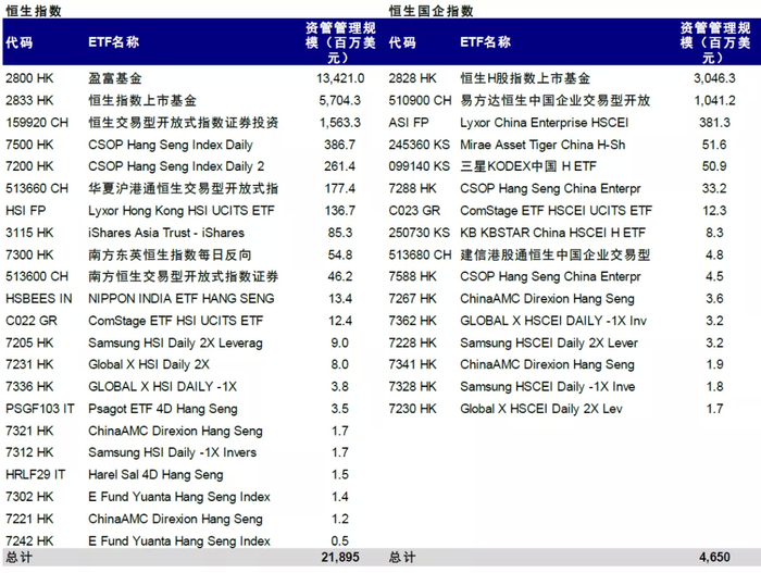 图表:追踪恒生指数和恒生国企指数的ETF资金规模