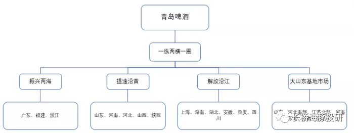 青岛啤酒为应对存量时代的高端化之争,企业潜心布局新一轮战略,获取更多区域市场的利润池。2018年,公司开始聚焦“一纵两横一圈”有攻有守布局全国,提出振兴沿海、提速沿黄、解放沿江战略,根据不同区域青啤的发展现状提出不同发展目标。
