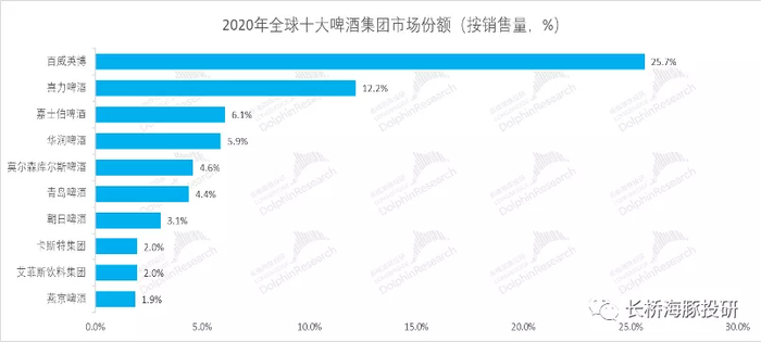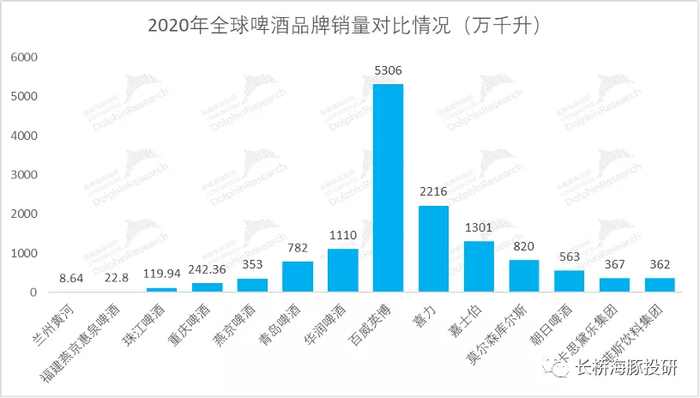 青岛啤酒年销量则为782万千升,占据4.4%的市场份额,全球排名第六,整体产品销量距离国际巨头还有非常大的提升空间。