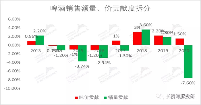 17年开始啤酒行业的销售收入主要由吨价驱动,长桥海豚认为未来价格增长将继续成为啤酒行业主要的增量贡献,销量方面将维持小幅震荡下行趋势。