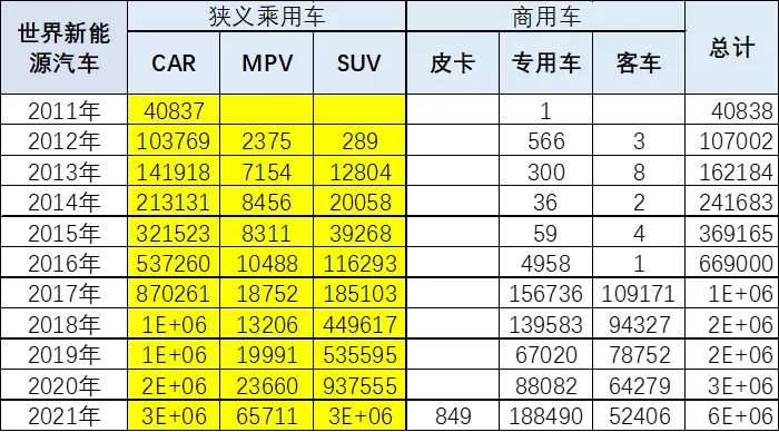 从上面数据看,专用车和客车只有中国市场比较强,世界其他市场销量微乎其微,因此暂不分析世界商用车,世界新能源汽车主要专指新能源乘用车。世界电动皮卡的销量是我们今年关注重点。