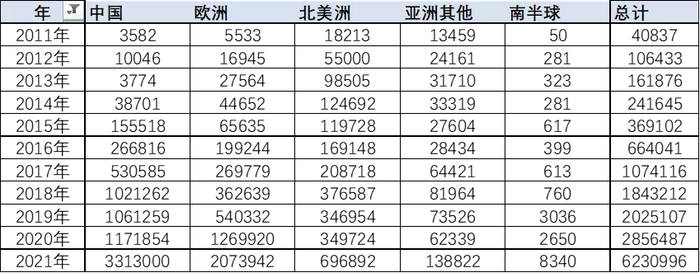 中国2021年331万乘用车,超越欧洲的207万个北美的70万,中国优势明显。