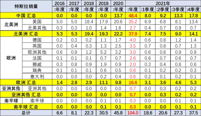 特斯拉主力车型新能源车表现分化较大,中国的特斯拉产销能力超强,其他国家的特斯拉存在感不强。