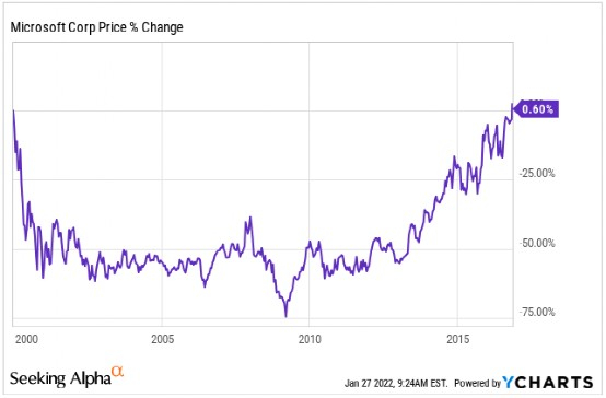 上周有人在推特上发布了微软的图表,准确地声称我们一直在谈论的是:在高峰期投资的投资者花了 16 年时间才收回他们的钱。我们回答说这段时期的管理不是很好,至少可以这么说。
