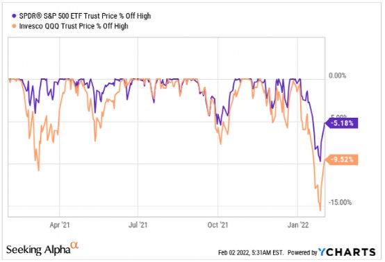 股市目前正处于一个非常动荡的时期。由于美联储的鹰派言论,成长型股票的估值重新开始,现在已经变成了熊市,没有股票是安全的。甚至标准普尔 500 指数 ( SPY ) 和纳斯达克指数 ( QQQ ) 也在遭受重大回撤: